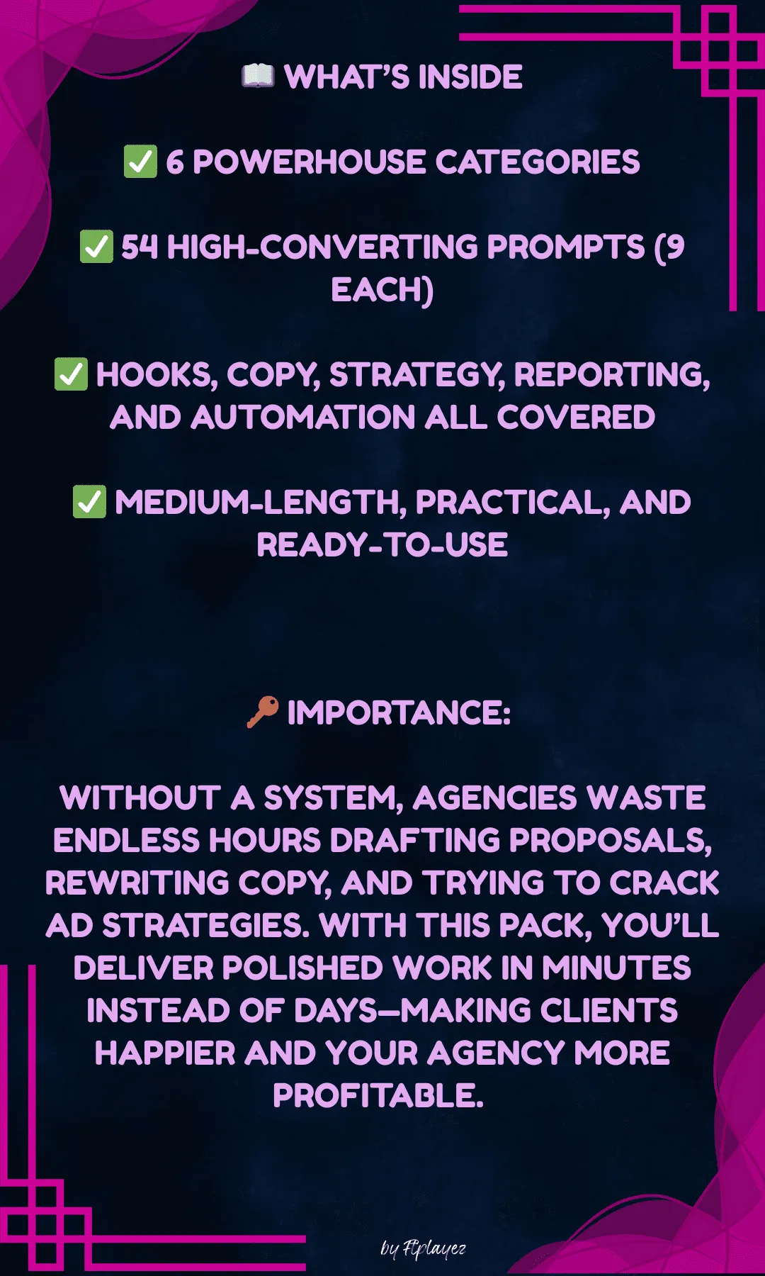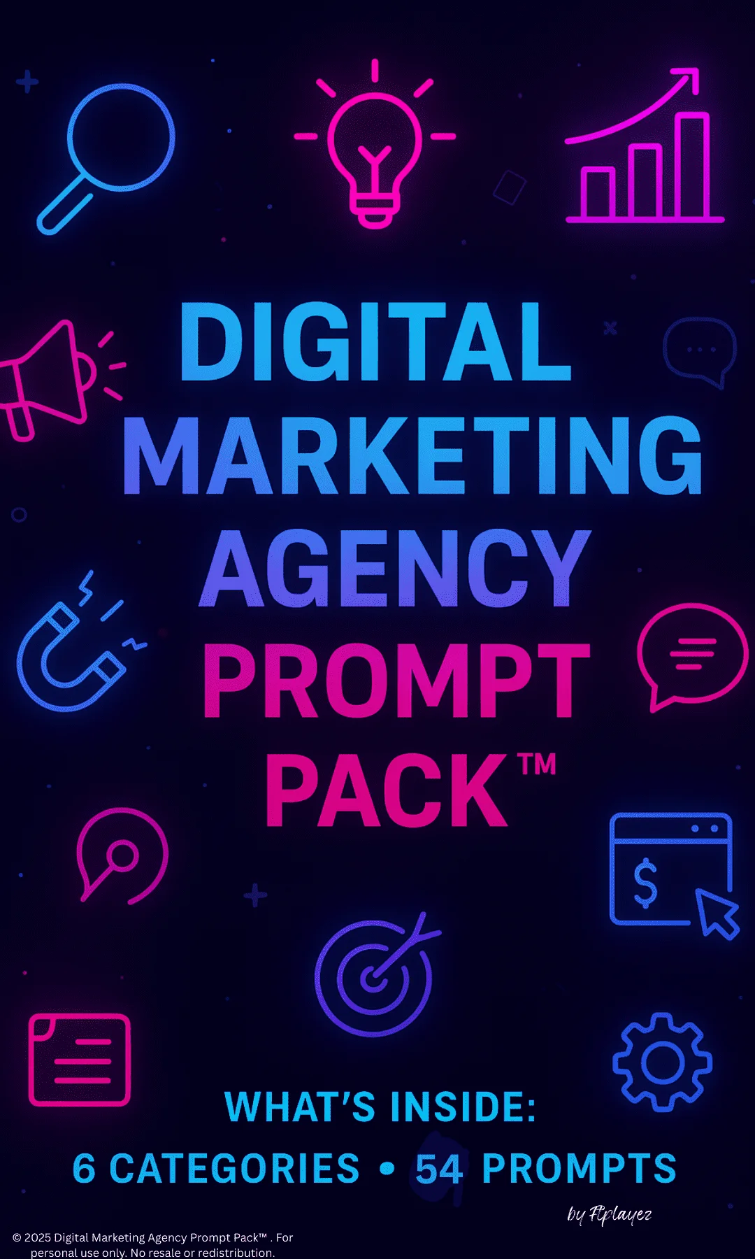 The Digital Marketing Agency Prompt Pack⢠is a premium collection of 54 expert-level ChatGPT prompts designed to help you operate like a high-end agency, even if youāre a solo founder or just starting out.