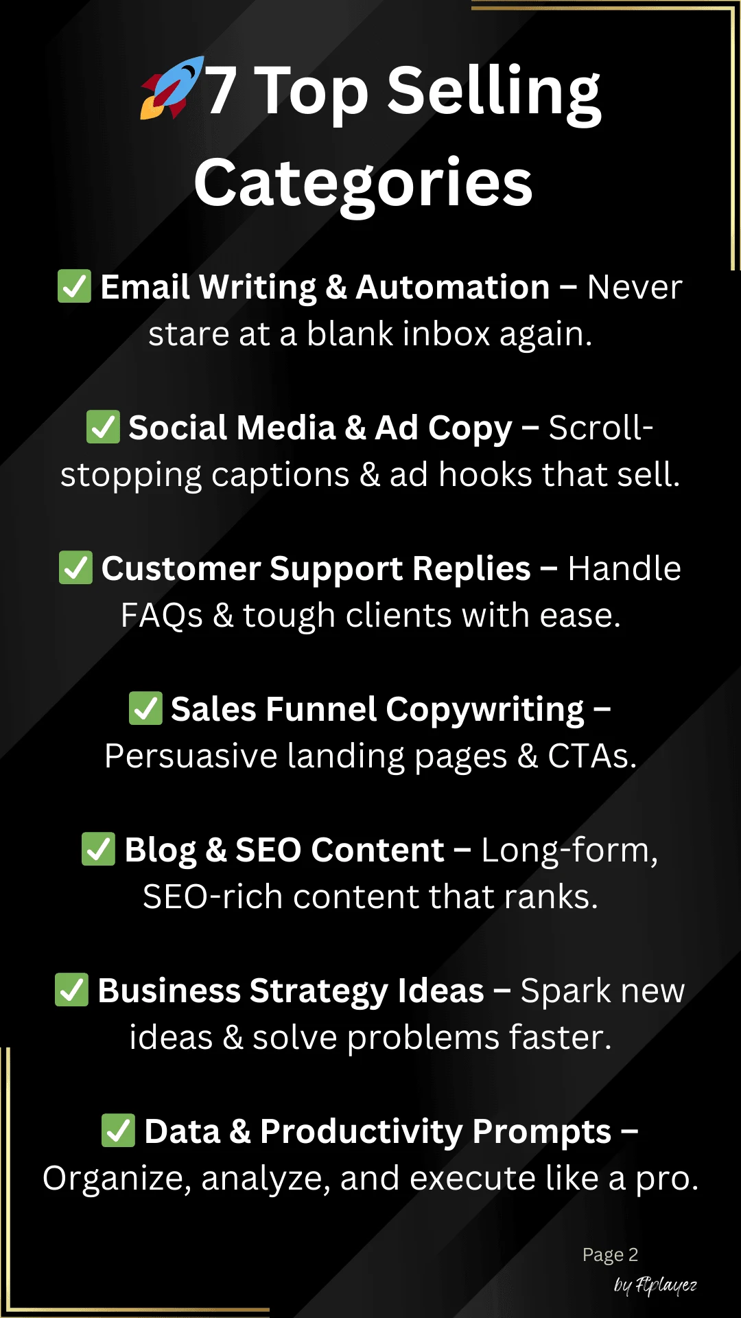 What’s Inside (7 Categories – 105 Prompts) 📦