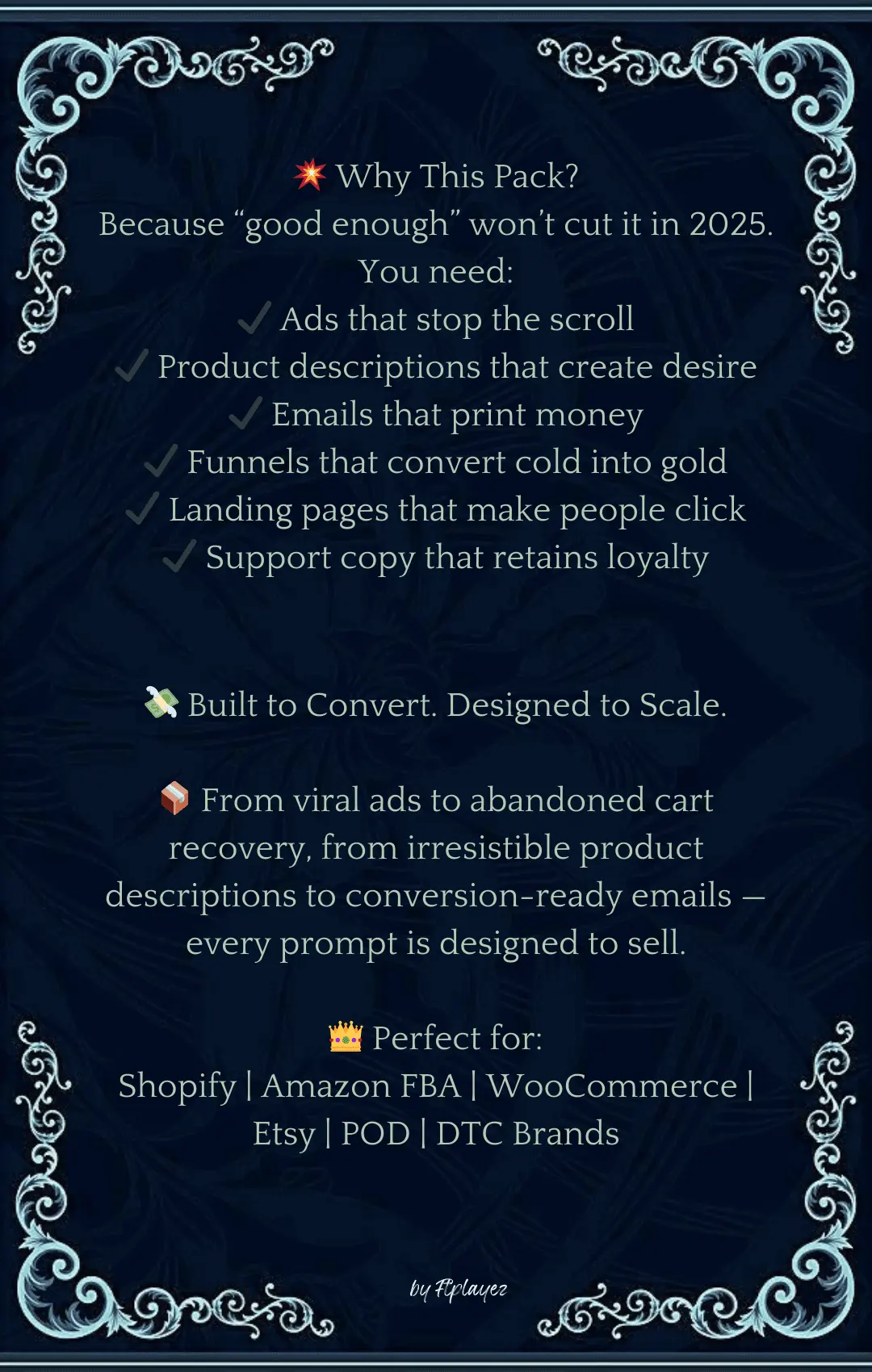 From writing high-converting product pages to crafting irresistible ad copy, email sequences, and abandoned cart recovery messages, this pack empowers you to sell more, work less, and scale faster.