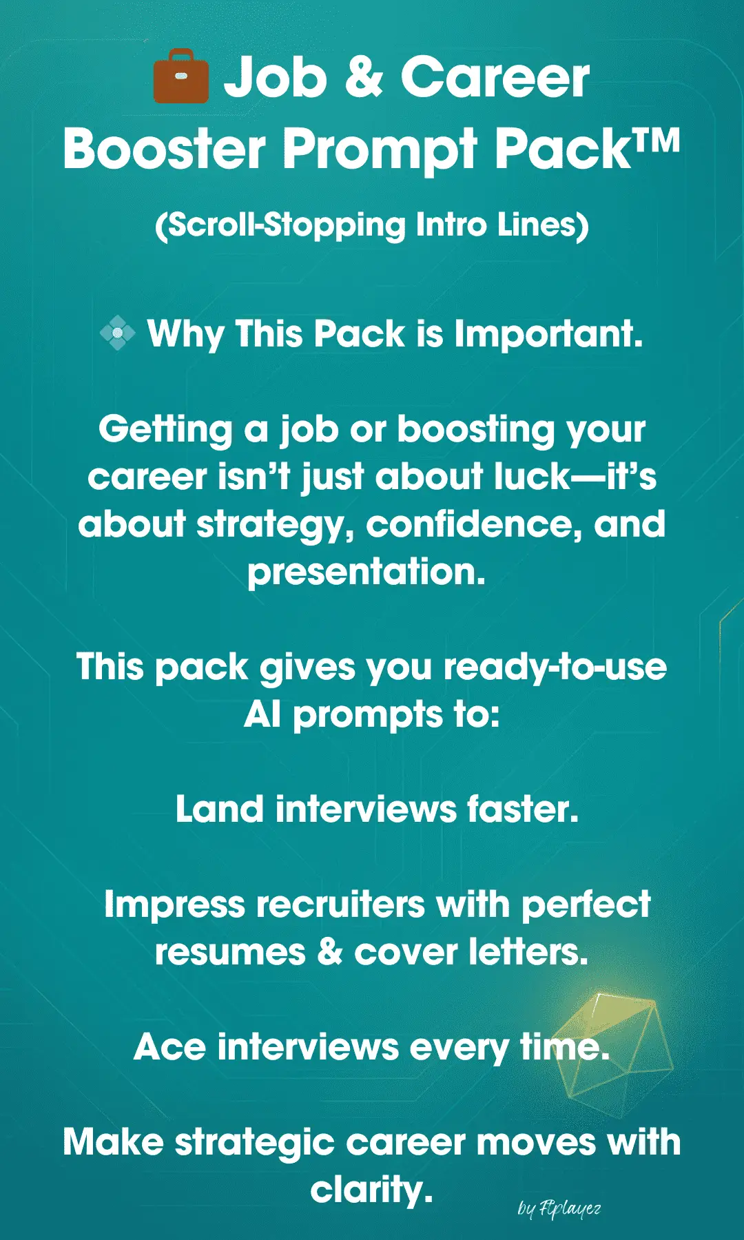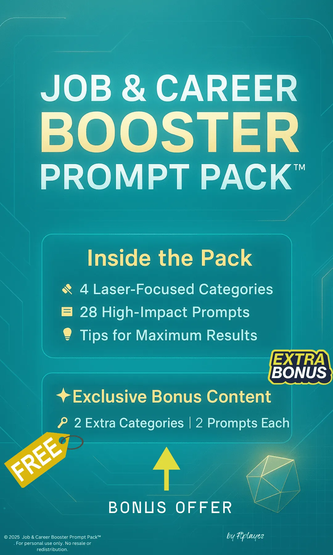 The Job & Career Booster Prompt Pack™ gives you a complete toolkit to land interviews, grow your professional presence, and succeed faster.